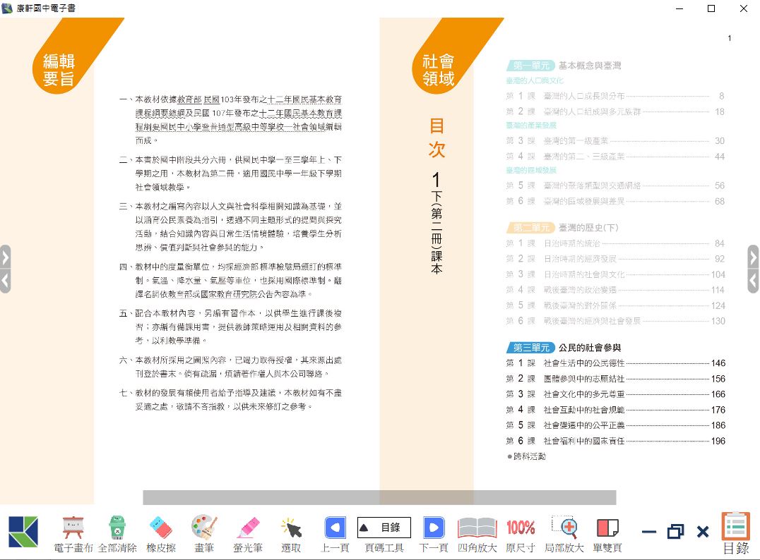 108學年下學期 國中 康軒版 公民電子書 1年級(含課本、習作含解答)教學光碟DVD版