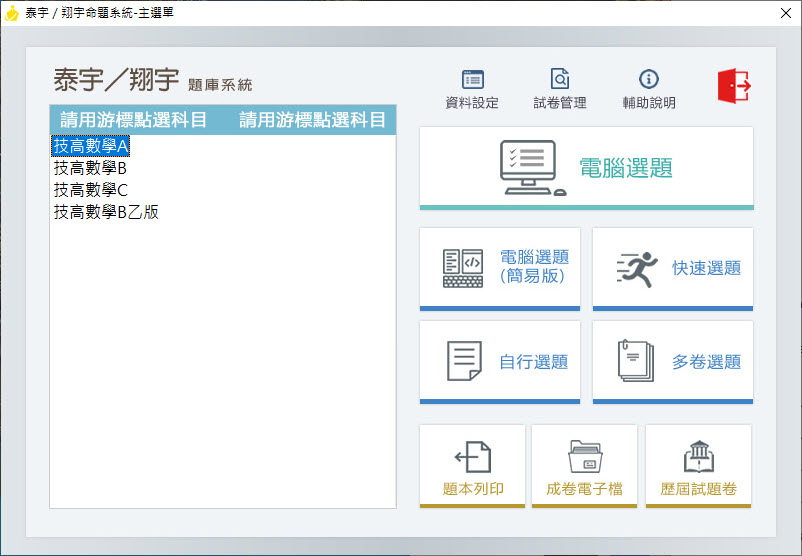112學年上學期 技術高中命題光碟 泰宇版 數學科(A、B、C、B乙版)(108課綱) 題庫光碟