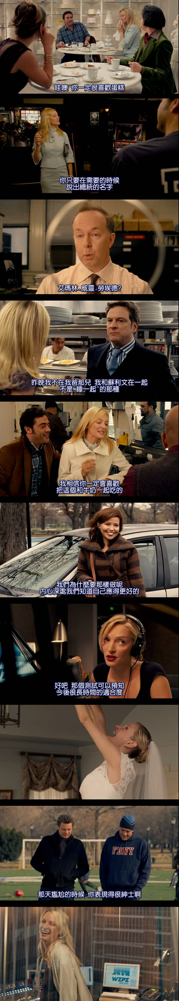 演  員:【春心蕩漾】烏瑪舒曼(Uma Thurman)、【BJ單身日記1、2】柯林佛斯(Colin