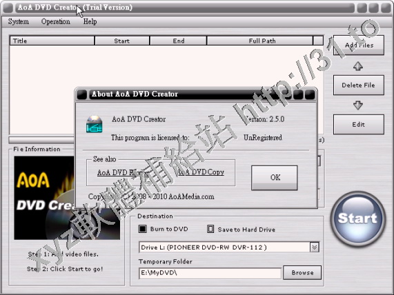 AoA DVD Creator v2.5.1 英文正式版(方便的創建或轉換電影到DVD光碟中軟體)