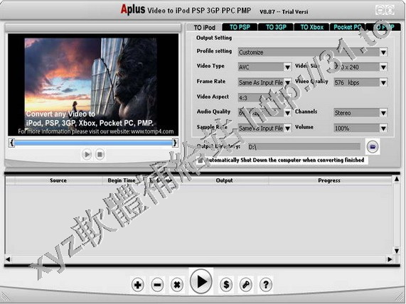 Aplus Video to iPod PSP 3GP Converter是一款一站式的MP4專業轉換軟體。該軟體轉換速